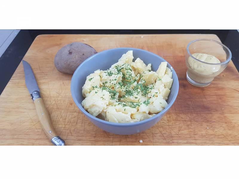 Plat typique de notre belle région, la salade de Pommes de terre est faite maison dans notre atelier...